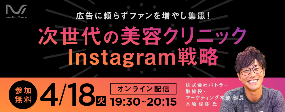 【無料ウェビナー開催のお知らせ】 4/18(火)19:30~ | 次世代の美容クリニック Instagram戦略