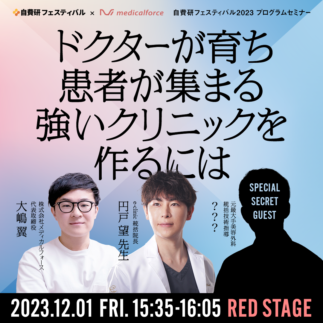 【セミナー開催のお知らせ】12/1(金)自費研フェスティバル2023|ドクターが育ち患者が集まる強いクリニックを作るには